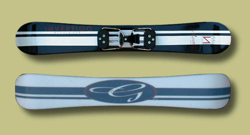 First of all, skiboards are basically two small snowboards that you use like skis. Don't get me wrong or anything, it is nothing like skiing (it's much easier and not as expensive). Some skiboards resemble two small skis like Salomon Snowblades do. If you still don't know what I'm talking about, check out some of the sites on the Skiboard Links page. Here is a picture of Groove's Invertigo Skiboard: